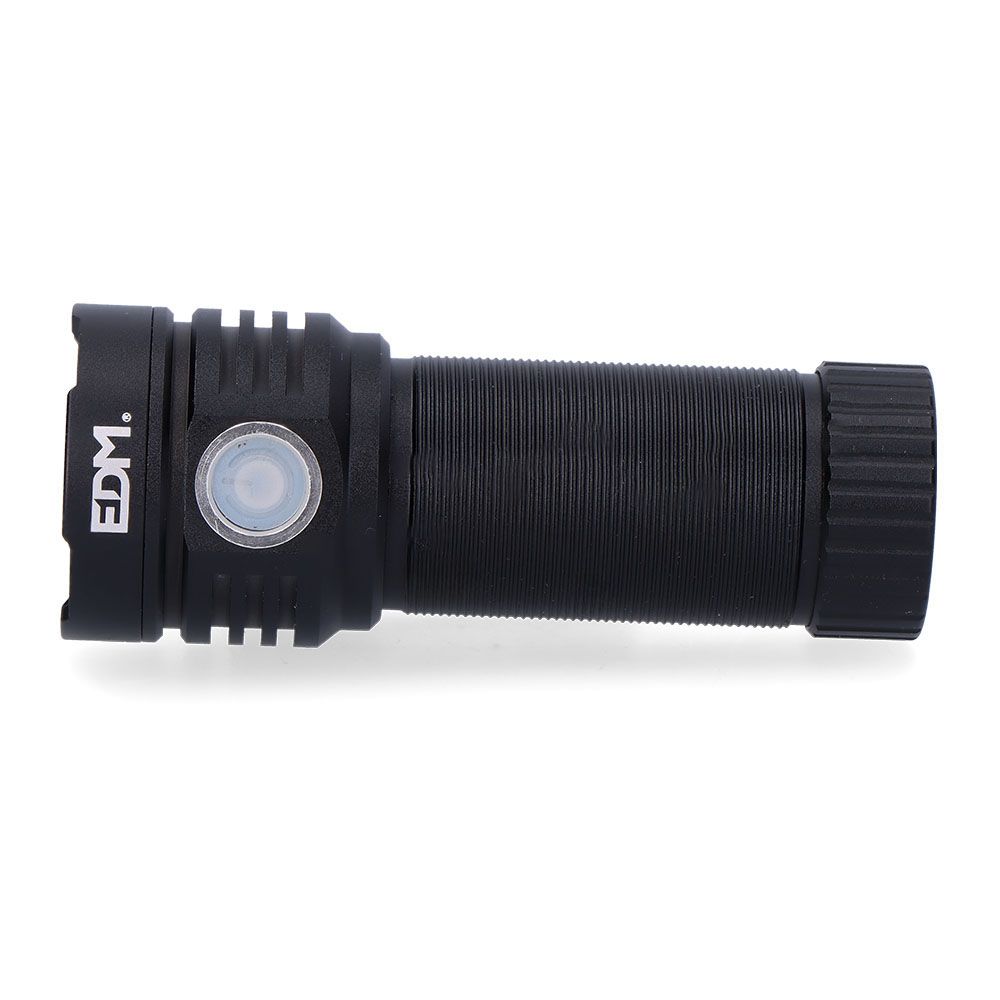 LINTERNA 3 LEDS 30W RECARGABLE.AUTONOMIA MODO POTENTE :1350lm/1h - MODO MEDIA POTENCIA: 320lm/2.5h - MODO SUAVE: 70lm/9h - MODO TURBO+MODO POTENTE: 3300lm/30s+1350lm/45min. LUZ FLASH: 1350lm/1h. PULSAR 2 VECES PARA ENCENDER MODO FLASH.MEDIDA: Ø4x10,5cm. MATERIAL: ALUMINIO. RESISTENCIA A SALPICADURAS IP54.BATERIA 2000 mAh DE LITIO INCLUIDA, CARGA USB TIPO C, CABLE INCLUIDO.