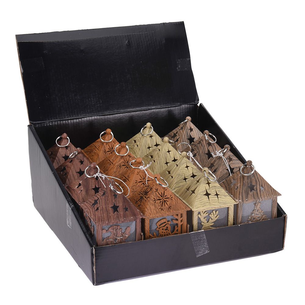 FAROL LED TALLADO EFECTO MADERA. 4 MODELOS SURTIDOS 1xCR2032 NO INCLUIDA 6,5x6,5x12cm (ancho/fondo/alto) COLORES/MODELOS SURTIDOS