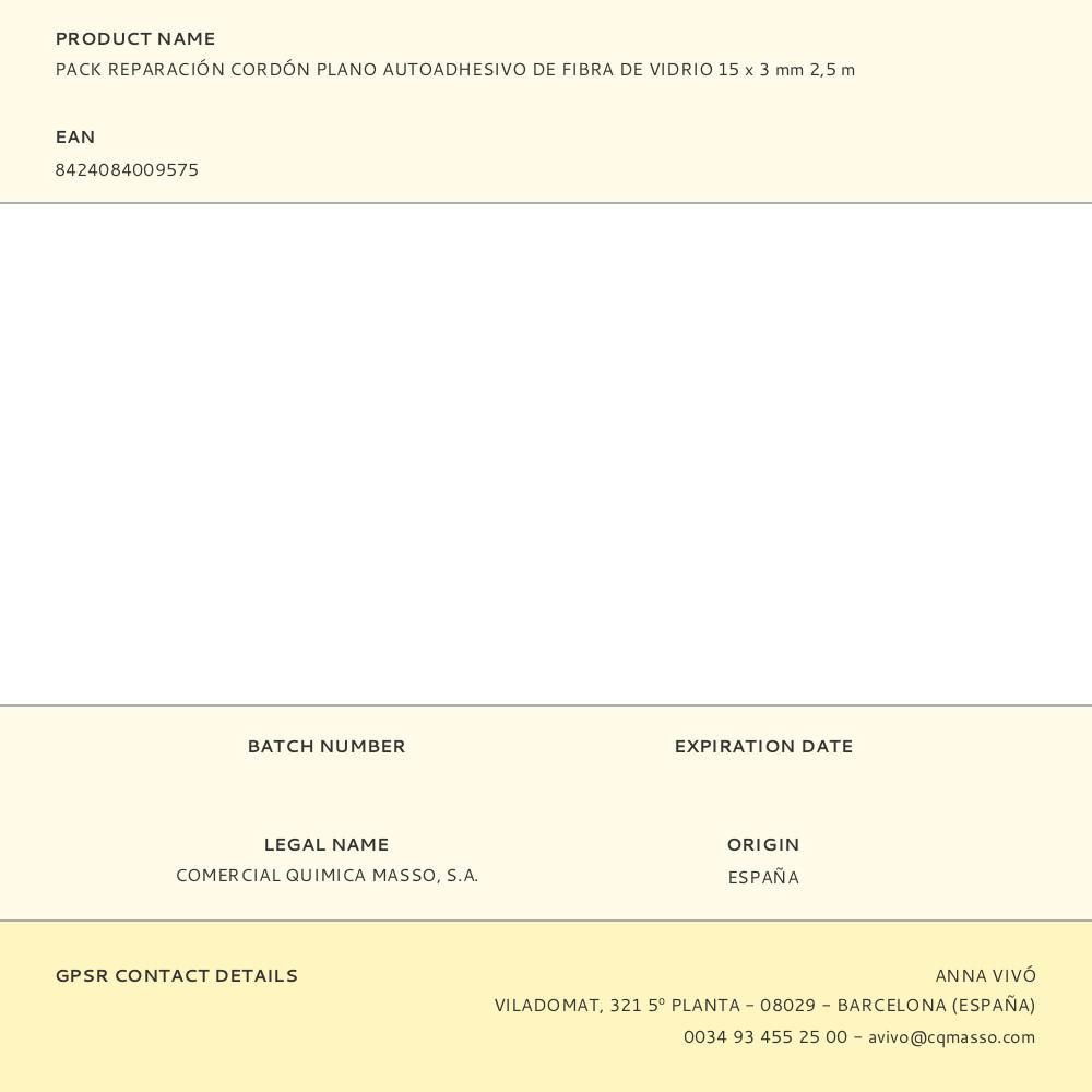 PACK REPARACIÓN CORDÓN PLANO AUTOADHESIVO DE FIBRA DE VIDRIO 15 x 3 mm 2,5 m