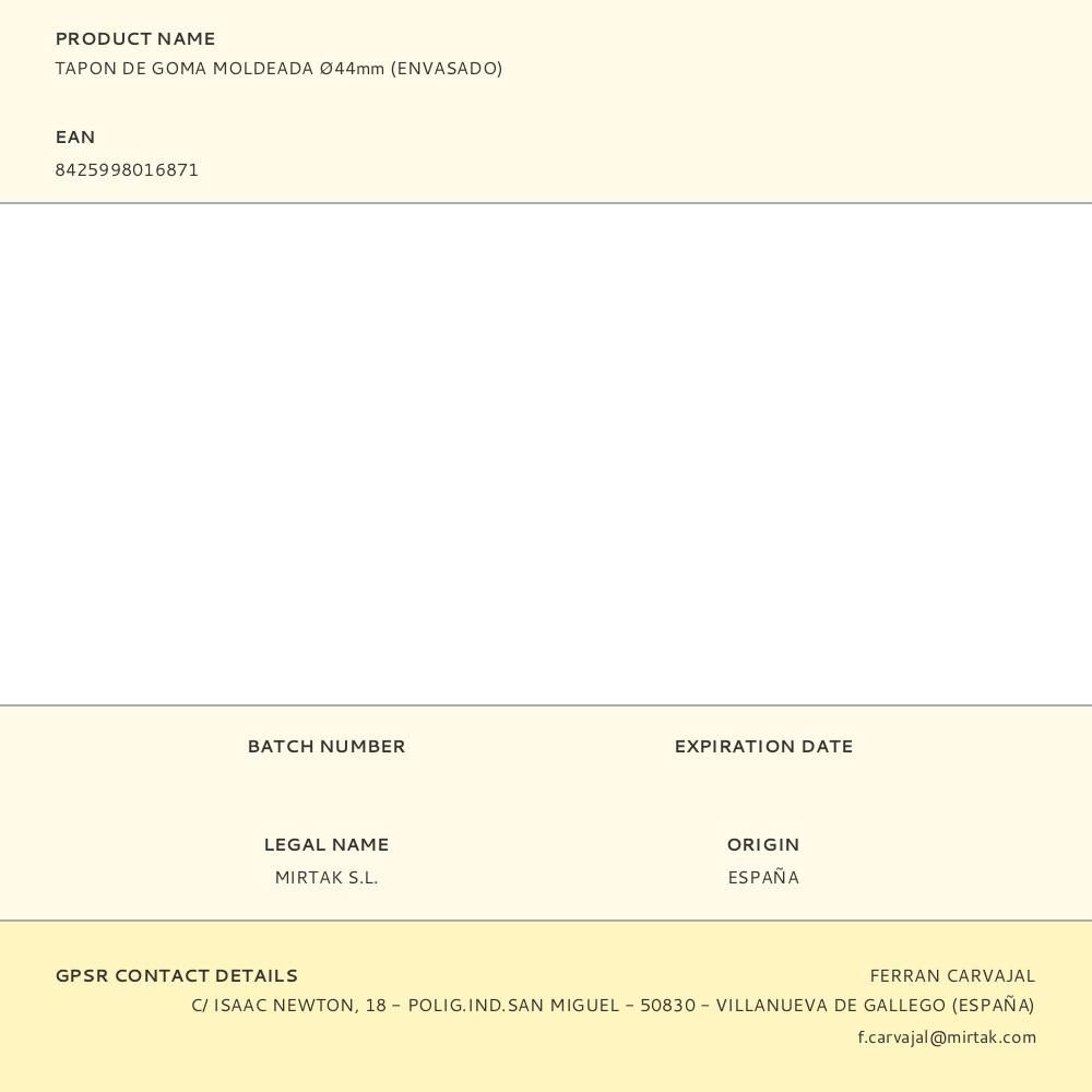 TAPON DE GOMA MOLDEADA Ø44mm (ENVASADO)