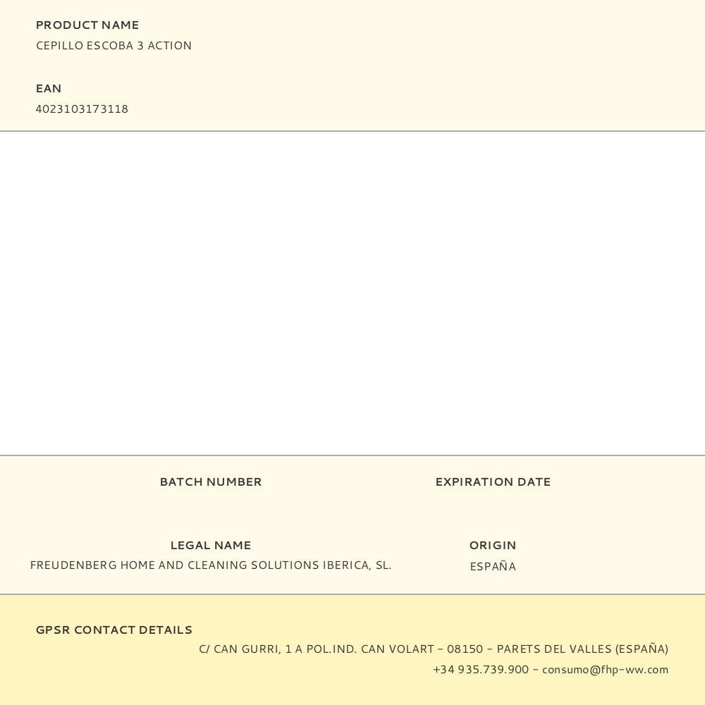 RECAMBIO 3 ACTION. CEPILLO PARA 3 NECESIDADES. 3 TIPOS DE CERDAS QUE PERMITEN RECOGER LA SUCIEDAD DE UNA SOLA PASADA. LAS BARRERAS ANCHAS DE CERDAS NEGRAS ULTRAFINAS RECOGEN EL POLVO MÁS FINO, LAS CERDAS GRISES RECTANGULARES Y DISPUESTAS EN DIAGONAL ESTAN ESPECIALMENTE DISEÑADAS PARA CAPTURAR PELOS. LAS CERDAS ROJAS SON MAS LARGAS, RIGIDAS Y ANGULADAS, PARA PODER LLEGAR A LAS ESQUINAS Y RINCONE MAS DIFICILES. 5 VECES MAS RESISTENTE. MAYOR DURABILIDAD. MAS HIGIENICO Y CON PROTECTORES PARA NO DAÑAS LOS MUEBLES