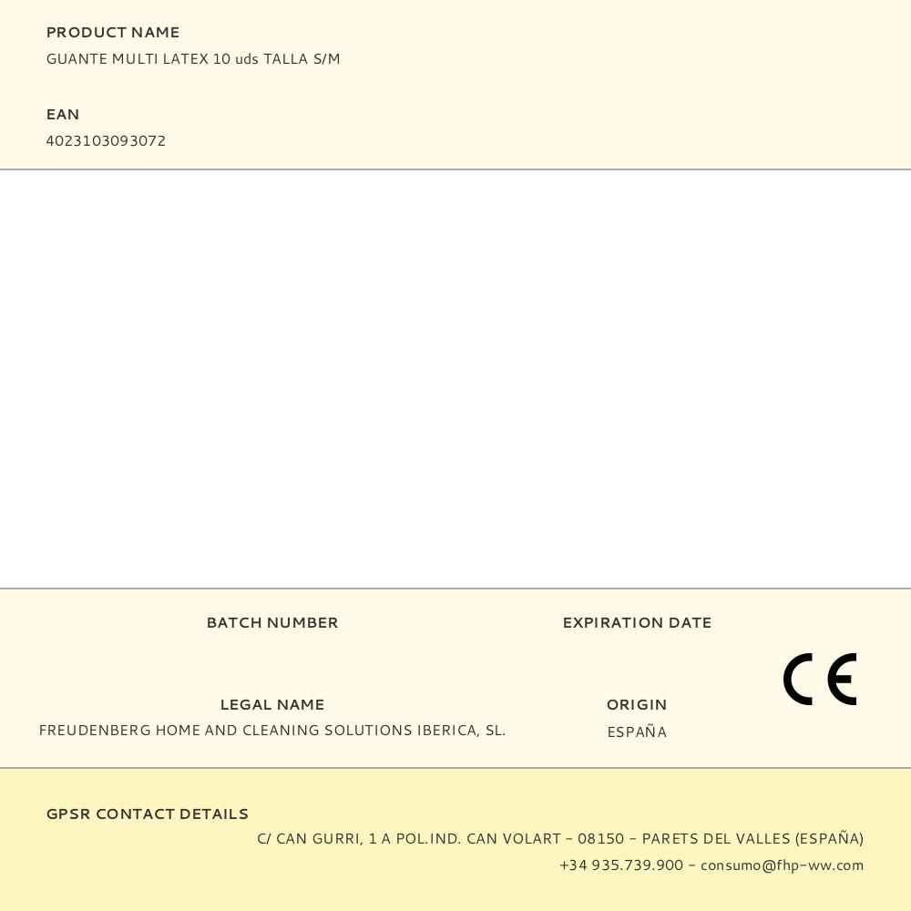 GUANTE MULTI LATEX 10 UNID. TALLA S/M. GUANTES MULTIUSOS DESECHABLES. MAYOR SENSIBILIDAD Y CONTROL CON UN AJUSTE PERFECTO A LA MANO. PACK 10 UNIDADES. GRAN SENSIBILIDAD AL TACTO, AL SER UN GUANTE DESECHABLE, EXTRA FINO DE LATEX 100% EXTRARESISTENTE. NO CONTIENEN TALCO PARA EVITAR REACCIONES ALERGICAS. GUANTE DE ALTA CALIDAD A BUEN PRECIO. MUY FACIL DE PONER Y QUITAR, GRACIAS A LA ELASTICIDAD DEL LATEX. APORTA UNA SENSACION DE MAXIMO CONFORT Y UN AJUSTE PERFECTO. IDEAL PARA LIMPIEZA EN GENERAL, TINTES, LIMPIEZA DE ZAPATOS, JARDINERIA Y PINTURA