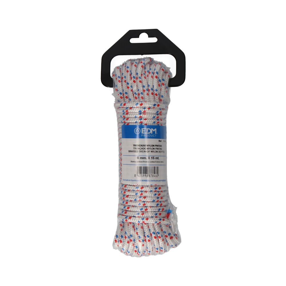 CUERDA TRENZADA BLANCA CON PINTAS NYLON, CALIBRE 6 mm x 15 m