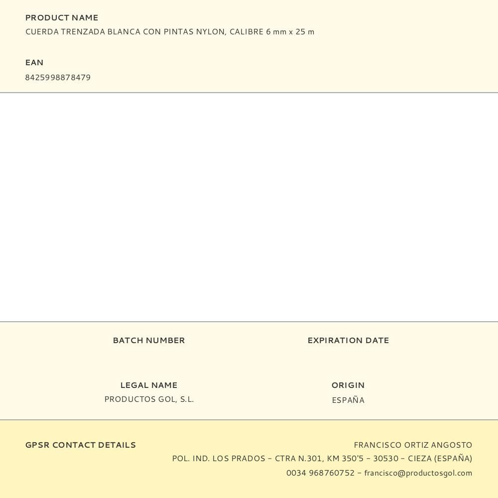 CUERDA TRENZADA BLANCA CON PINTAS NYLON, CALIBRE 6 mm x 25 m