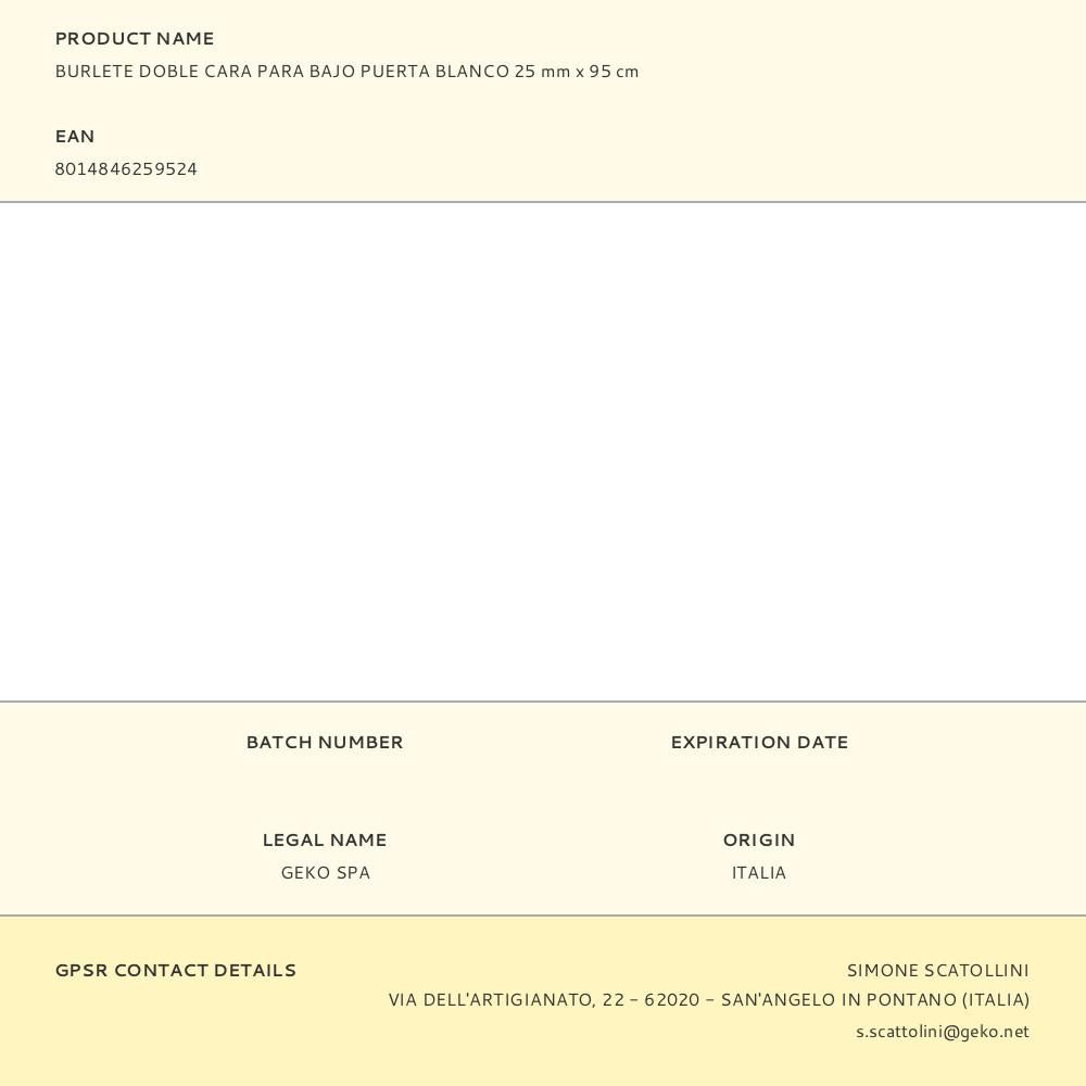 BURLETE DOBLE CARA PARA BAJO PUERTA BLANCO 25 mm x 95 cm