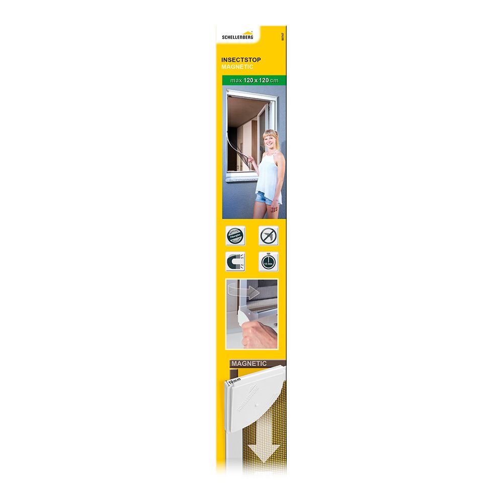 MOSQUITERA CON MARCO MAGNÉTICO, BLANCA, 120 x 120 cm. MONTAJE EN SOLO 15 MINUTOS SIN TALADRO. PARA USO EN EXTERIOR COMO EN EL INTERIOR. PROFUNDIDAD DE SOLO 8 mm, CABE DETRAS DE LA MAYORIA DE LAS PERSIANAS. ESCUADRAS CON ASAS PARA RETIRARLO FACILMENTE. RECORTABLE INDIVIDUALMENTE. DESMONTABLE