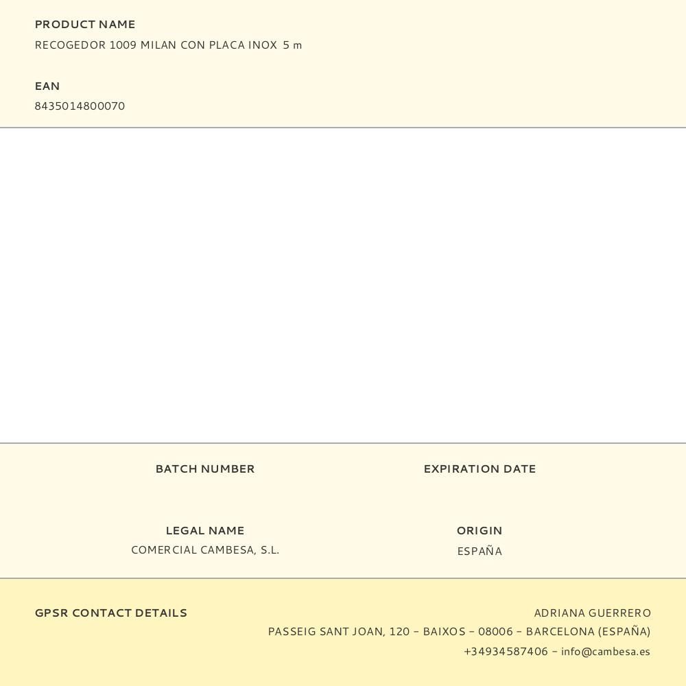 RECOGEDOR 1009 MILAN CON PLACA INOX 5 m