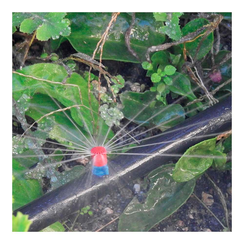 MAXI JETS ARCO DE RIEGO 360°, CAUDAL 52 l/h. ALCANCE DE RIEGO: 1,8 - 2,9 m. ESPECIALMENTE RECOMENDADO PARA PARTERRES Y ROCALLA. MICRODIFUSIÓN/MICROASPERSIÓN: EL RIEGO SE EMITE EN FORMA DE FINOS CHORROS Y/O ABANICOS. RIEGO MUY FINO, DELICADO Y UNIFORME. A DIFERENCIA DE LOS GOTEROS CONVENCIONALES CUBRE UNA ZONA NO UNICAMENTE UNA PLANTA. MATERIAL: POLIPROPILENO. TRATAMIENTO ANTI UV. CONTIENE: 10 uds