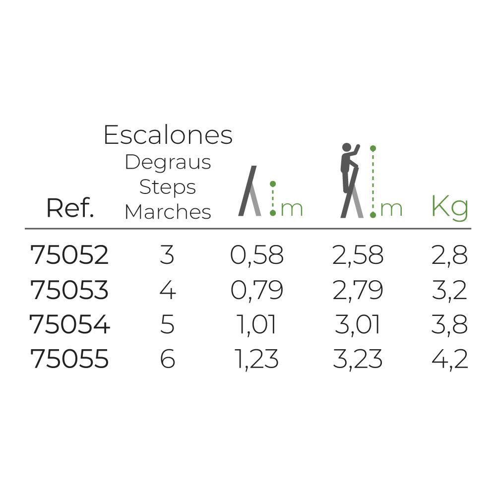 ESCALERA DOMÉSTICA DE ALUMINIO 5 PELDAÑOS. MEDIDAS PLEGADA: 45 x 10,5 x 172 cm. ALTURA DEL ÚLTIMO PELDAÑO 1,01 m. PESO DE LA ESCALERA: 3,8 kg. PESO MAXIMO: 150 kg