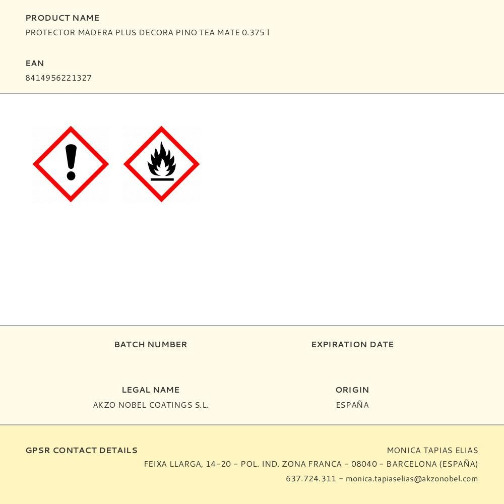 PROTECTOR MADERA PLUS DECORA PINO TEA MATE 375 ml CON PIGMENTOS MICRONIZADOS ESPECIALES DE ÓXIDO DE HIERRO. PROTEGEN Y DECORAN LA MADERA