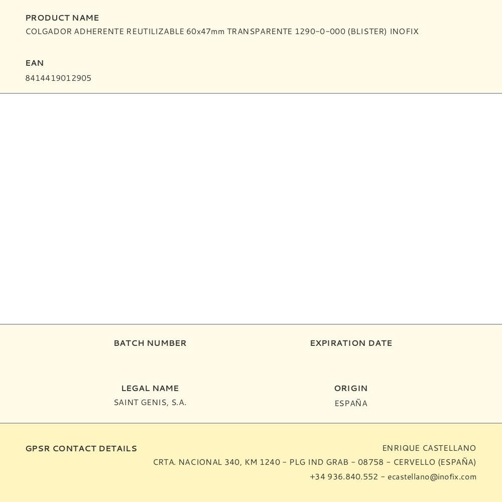 COLGADOR ADHERENTE REUTILIZABLE 60x47mm TRANSPARENTE 1290-0-000 (BLISTER) INOFIX