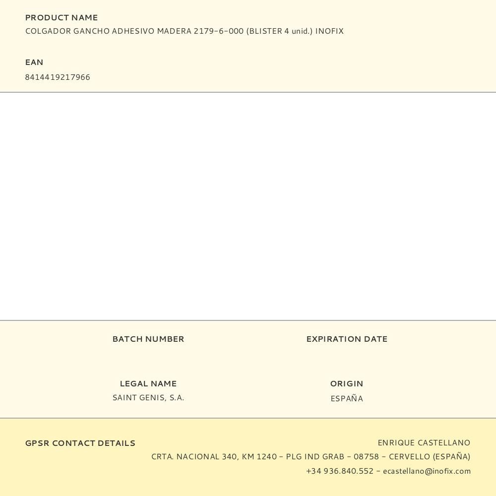 COLGADOR GANCHO ADHESIVO MADERA 2179-6-000 (BLISTER 4 unid.) INOFIX