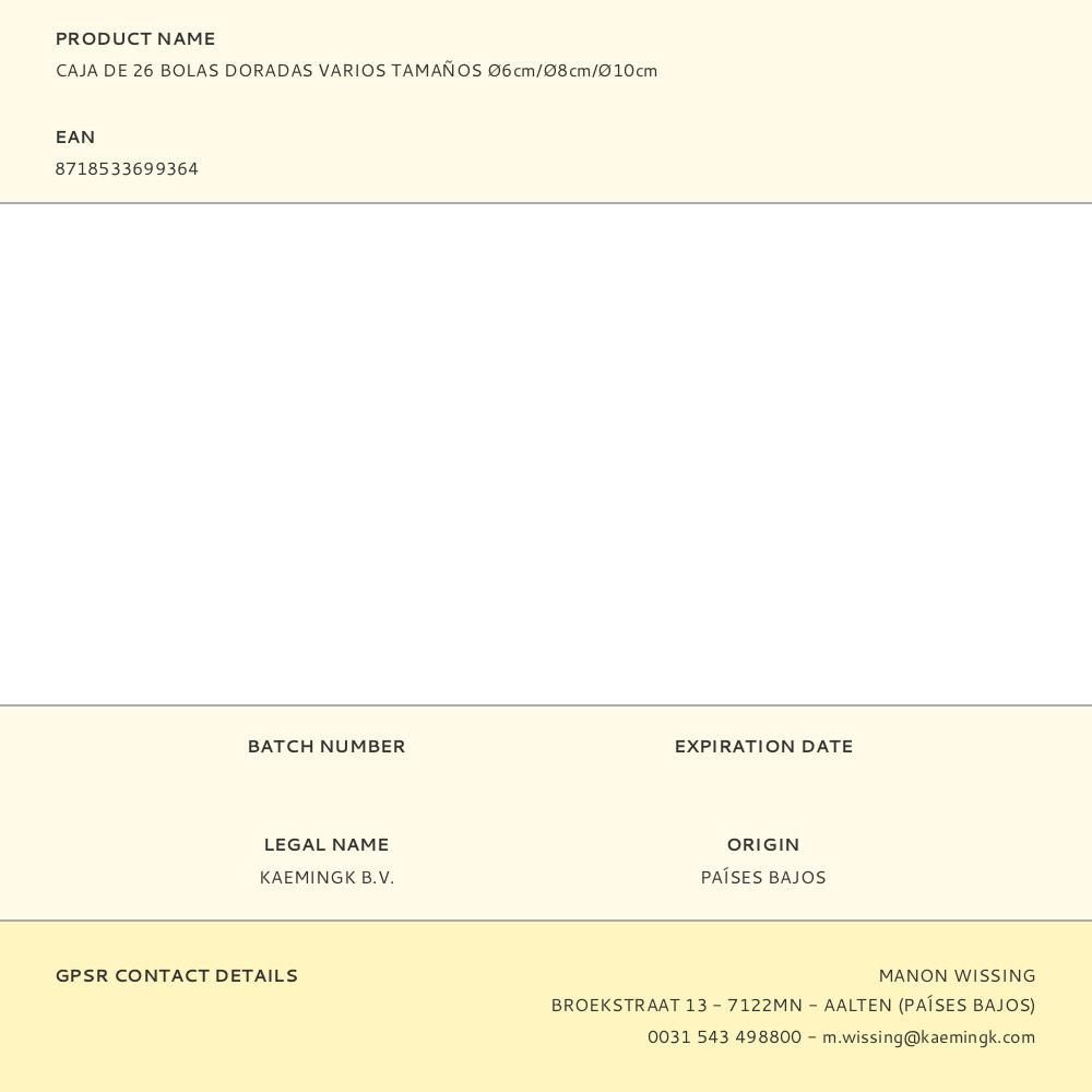 CAJA DE 26 BOLAS DORADAS VARIOS TAMAÑOS Ø6cm/Ø8cm/Ø10cm (diámetro)