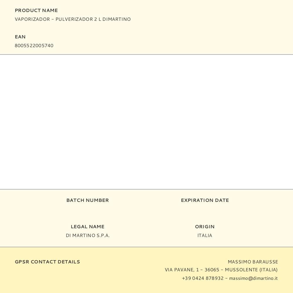PULVERIZADOR A PRESIÓN DE POLIPROPILENO 2 L CON VARILLA DE ACERO, VÁLVULA QUE MANTIENE LARGO TIEMPO LA PRESIÓN, CANUTO SUSTITUIBLE, BOQUILLA REGULABLE, RESORTES DE ACERO INOXIDABLES, PALANCA DE SEGURIDAD, NEBULIZACIÓN UNIFORME, AGUJERO CALIBRADO, ALTURA DE PULVERIZACION 400 cm, JET ANGULO 60°, 2 bar