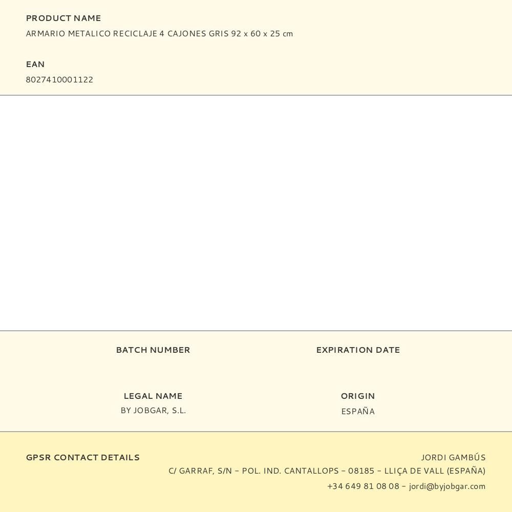 ARMARIO METALICO RECICLAJE 4 CAJONES GRIS 92 x 60 x 25 cm