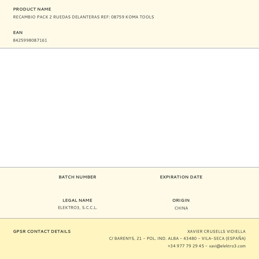 RECAMBIO PACK 2 RUEDAS DELANTERAS REF: 08759 KOMA TOOLS