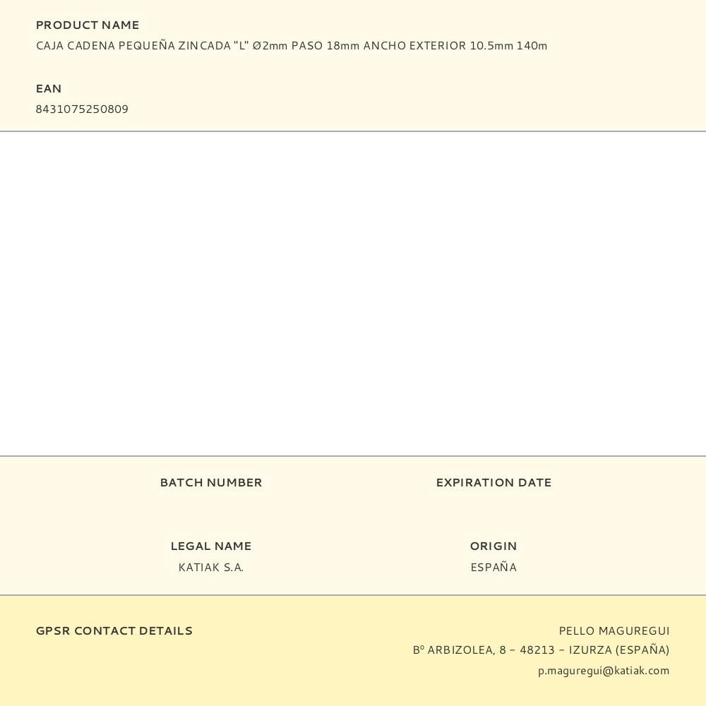 CAJA CADENA PEQUEÑA ZINCADA "L" Ø2mm PASO 18mm ANCHO EXTERIOR 10.5mm 140m