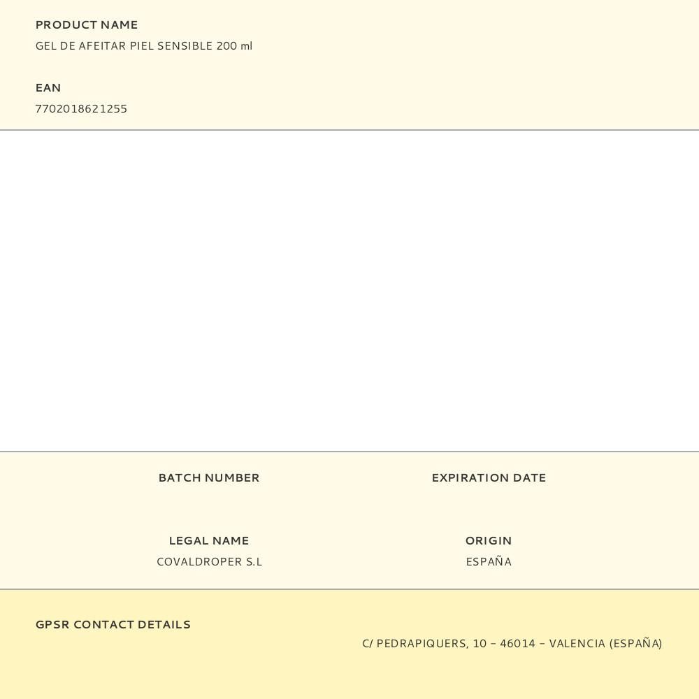 GEL DE AFEITAR PIEL SENSIBLE 200 ml