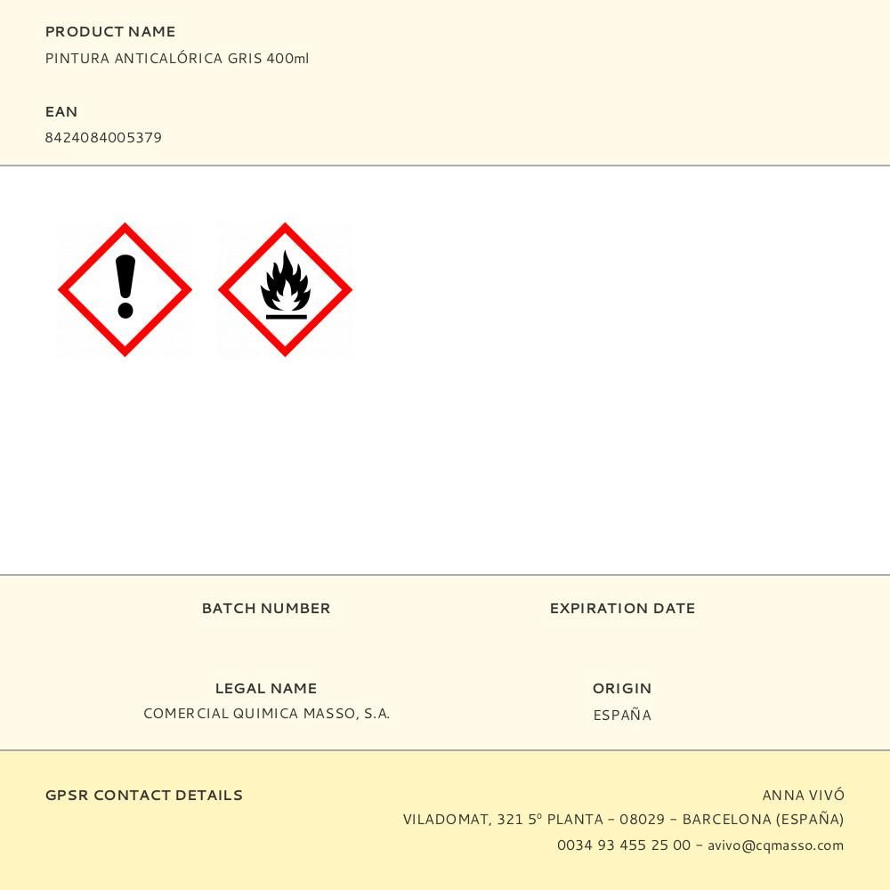 PINTURA EN SPRAY ANTICALÓRICA HASTA 600° GRIS 400 ml
