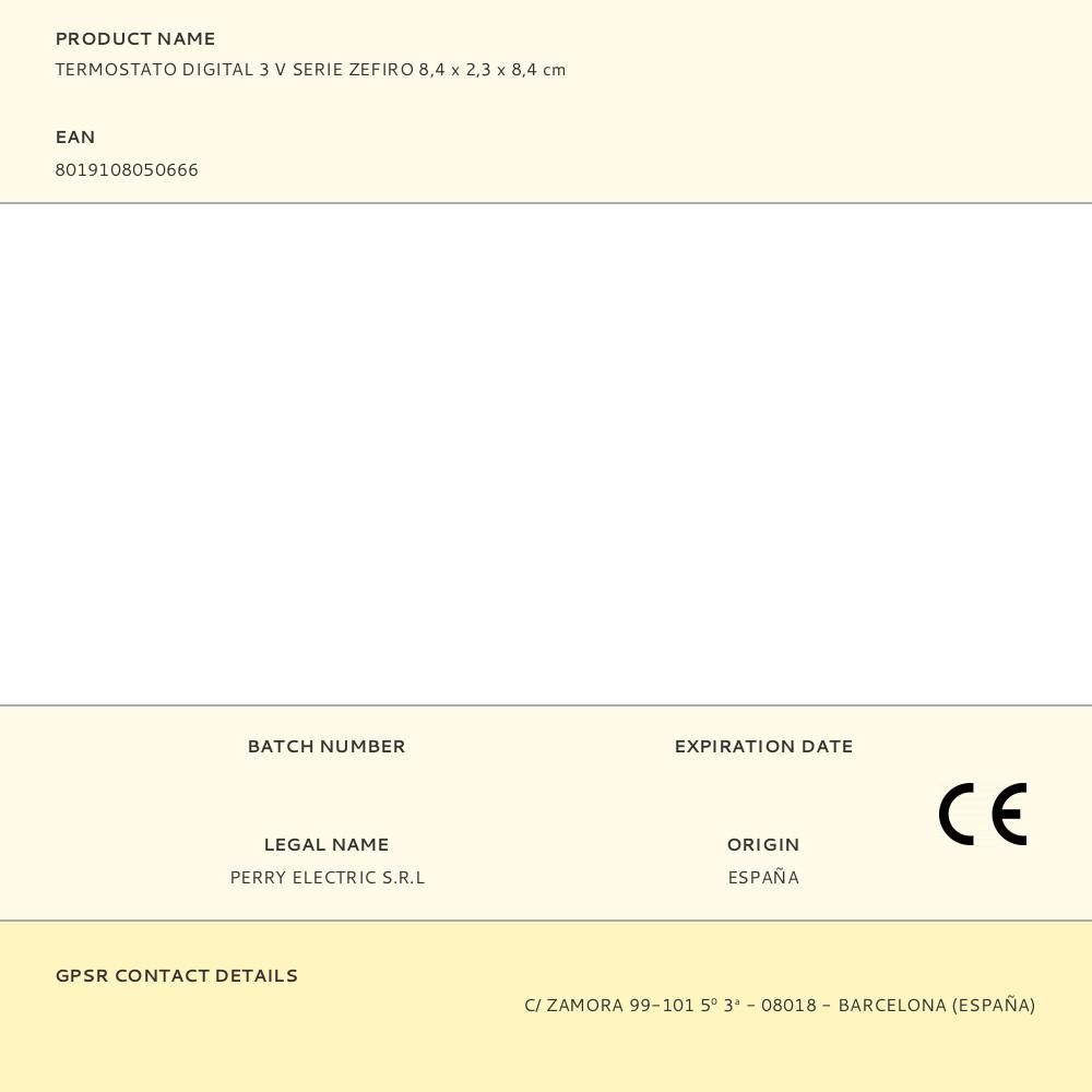 TERMOSTATO DIGITAL 3 V SERIE ZEFIRO 8,4 x 2,3 x 8,4 cm