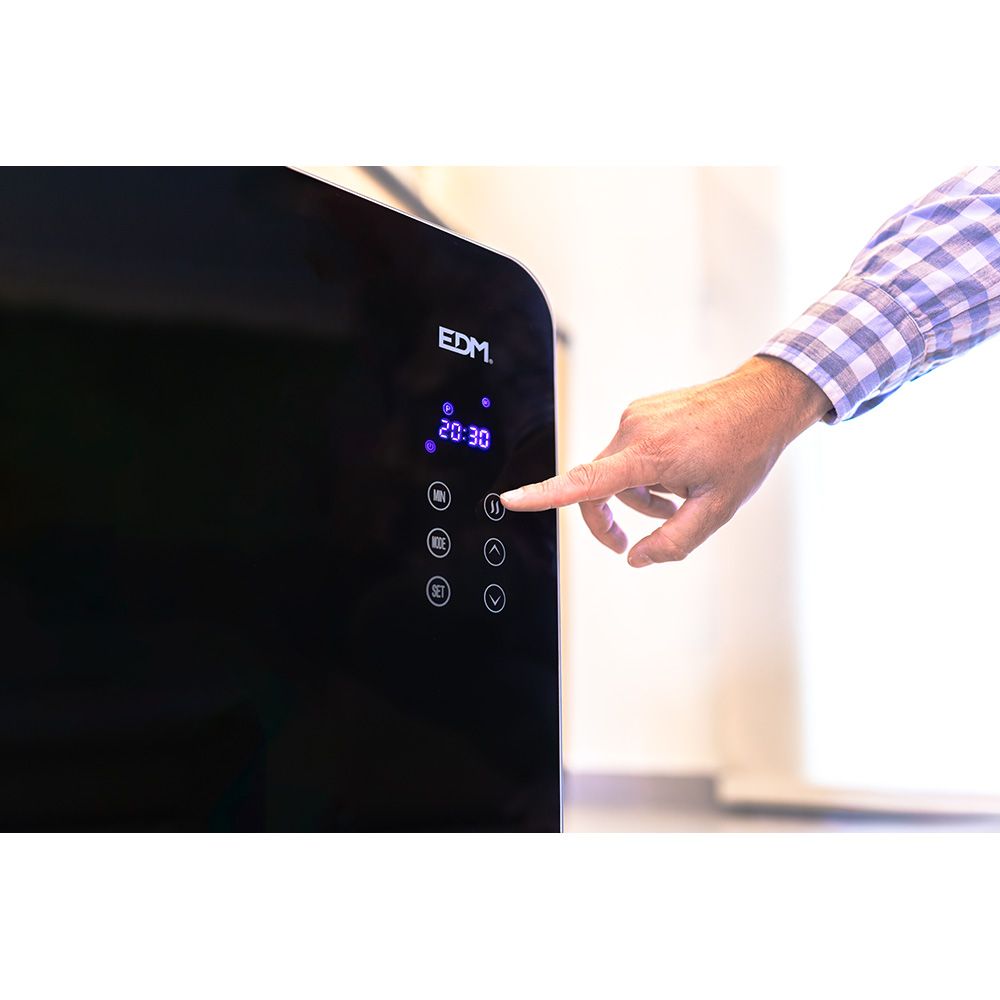 CONVECTOR CON PLACA DE CRISTAL 1500 W, 2 NIVELES DE POTENCIA 750 W / 1500 W, PANTALLA DE LED, IP24, CON PROGRAMADOR 24 h Y SEMANAL, PROTECCION SOBRECALENTAMIENTO, TERMOSTATO, INCLUYE PATAS, MANDO A DISTANCIA Y SISTEMA PARA COLGAR EN LA PARED, MEDIDAS: 76 x 24 x 43 cm