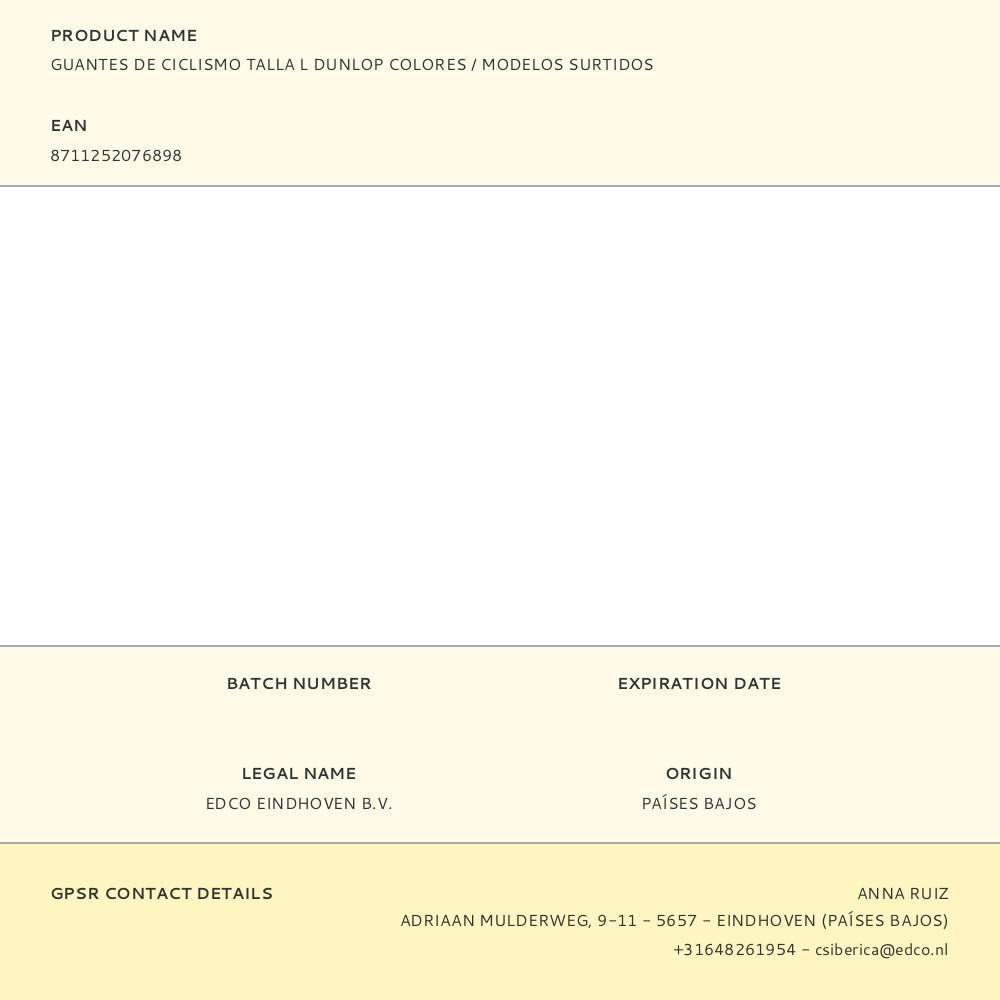 GUANTES DE CICLISMO TALLA L COLORES SURTIDOS DUNLOP COLORES / MODELOS SURTIDOS