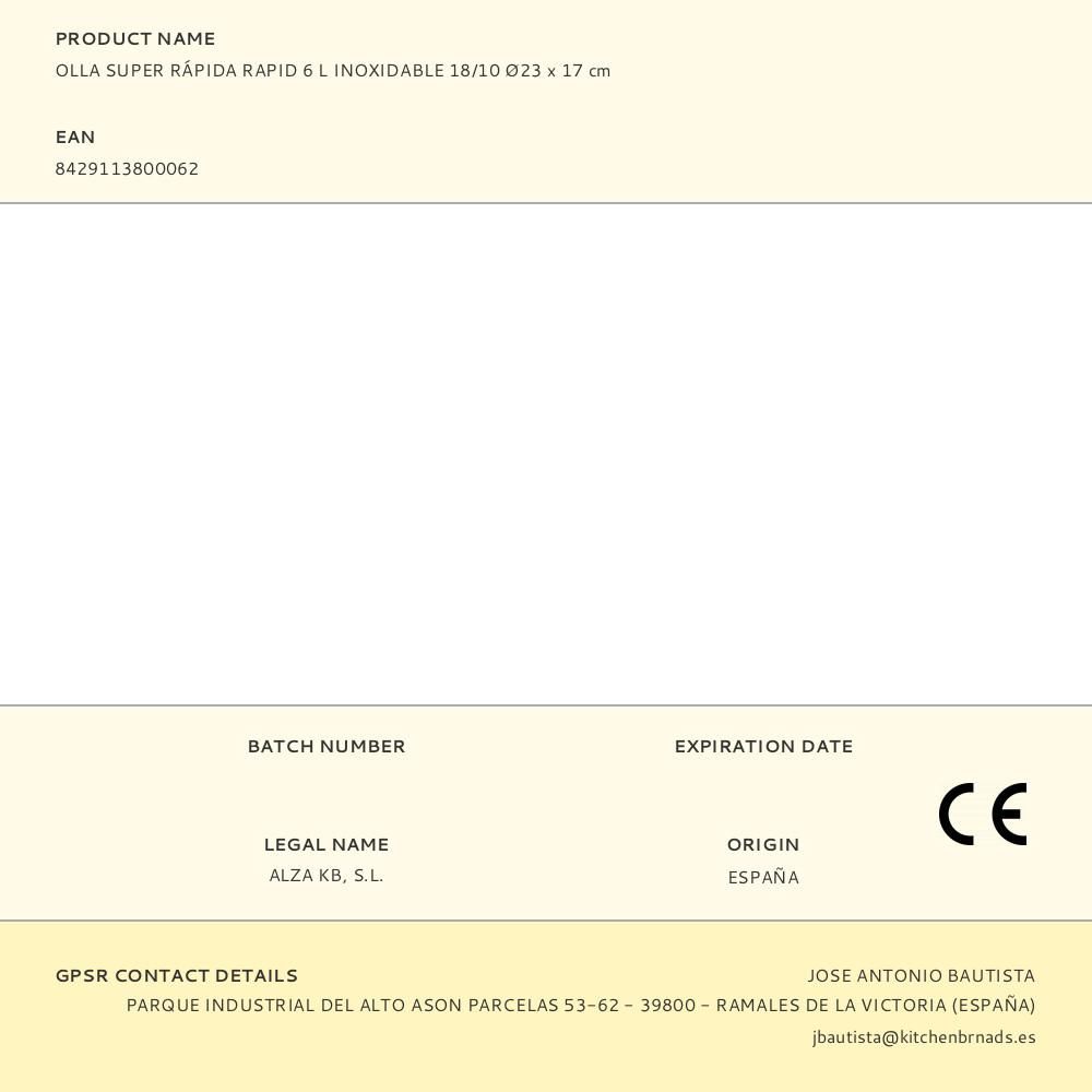 OLLA SUPER RÁPIDA RAPID 6 L INOXIDABLE 18/10 Ø23 x 17cm