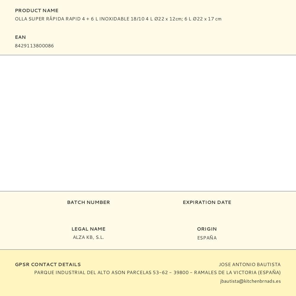 OLLA SUPER RÁPIDA RAPID 4 + 6 L INOXIDABLE 18/10 4 L Ø22 x 12cm - 6 L Ø22 x 17 cm