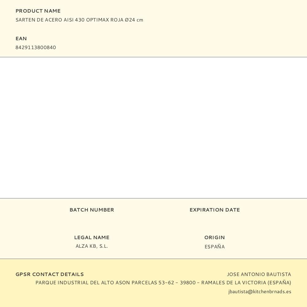 SARTÉN DE ACERO AISI 430 OPTIMAX ROJA Ø24 cm