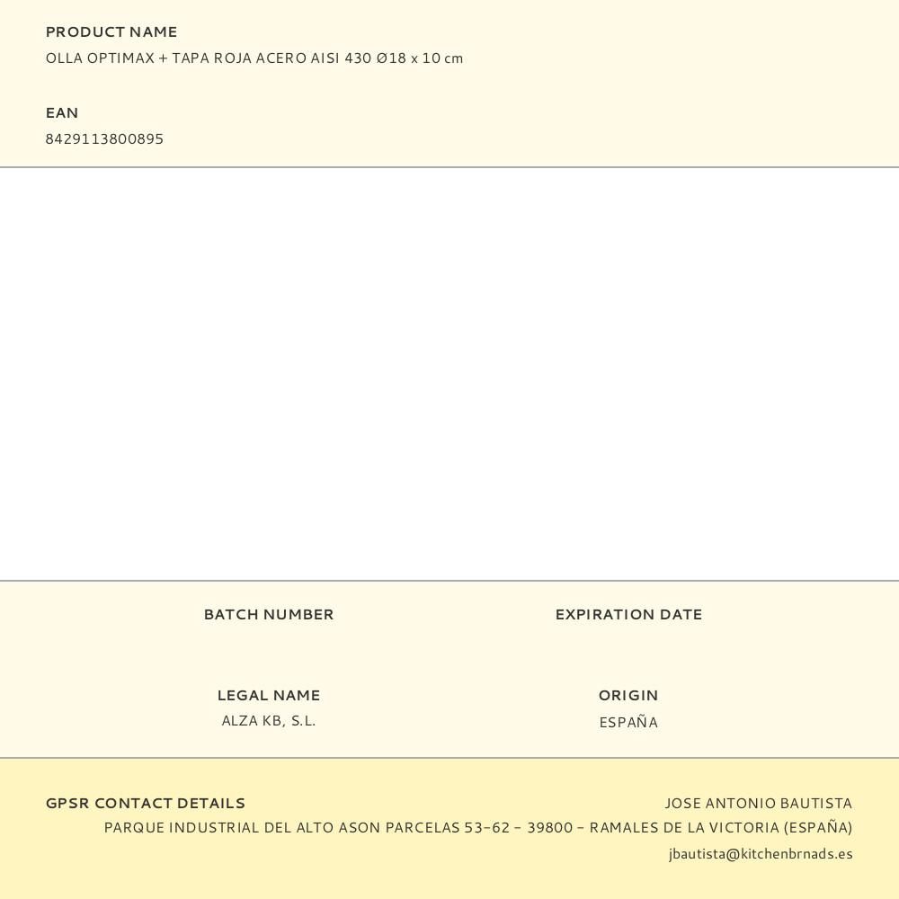 OLLA OPTIMAX + TAPA ROJA ACERO AISI 430 Ø18 x 10cm