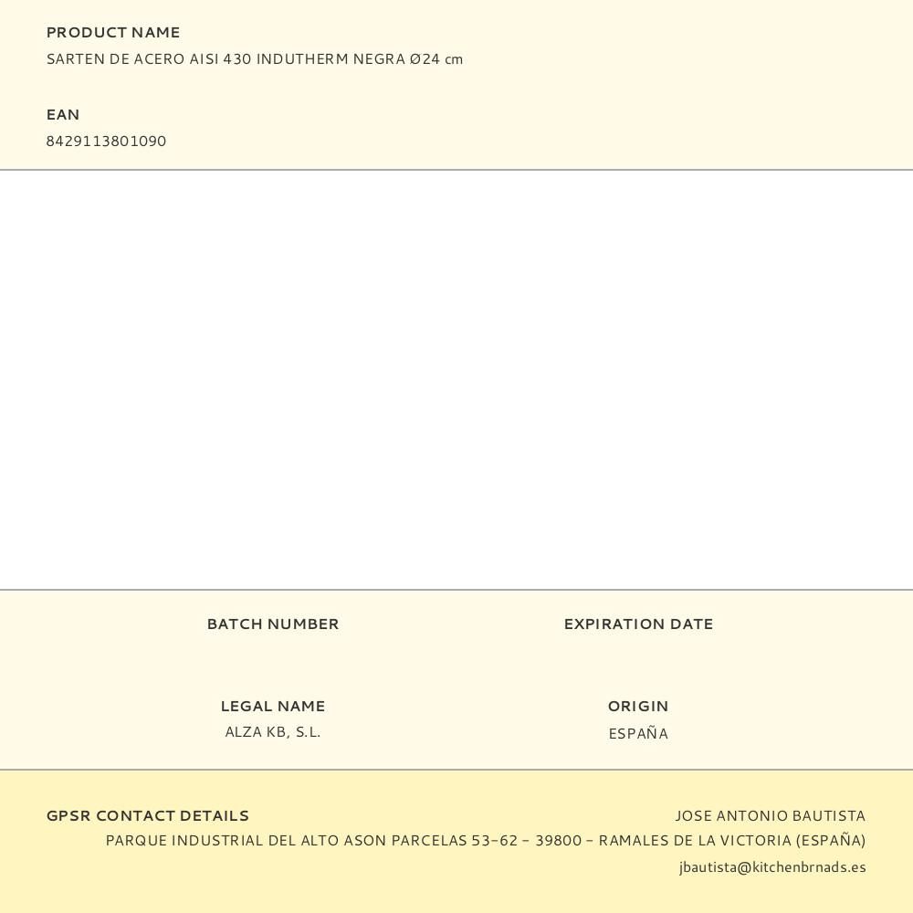 SARTÉN DE ACERO AISI 430 INDUTHERM NEGRA Ø24cm