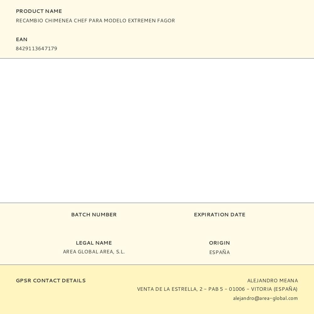 RECAMBIO CHIMENEA CHEF PARA MODELO EXTREMEN FAGOR