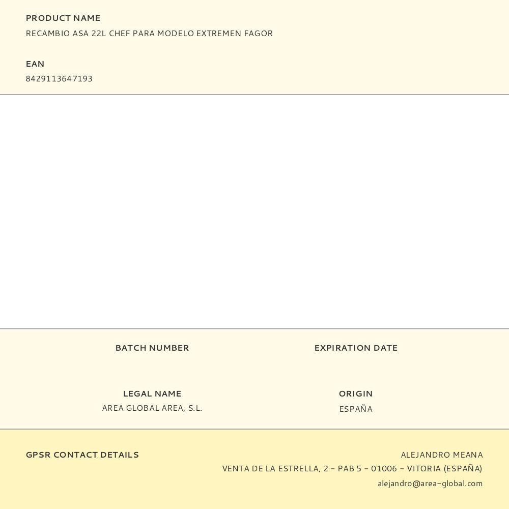 RECAMBIO ASA 22L CHEF PARA MODELO EXTREMEN FAGOR