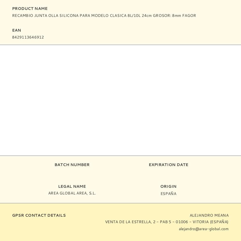 RECAMBIO JUNTA OLLA SILICONA PARA MODELO CLASICA 8L/10L 24cm GROSOR: 8mm FAGOR