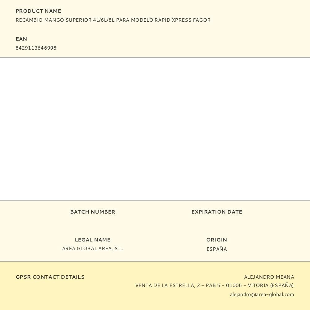RECAMBIO MANGO SUPERIOR 4L/6L/8L PARA MODELO RAPID XPRESS FAGOR