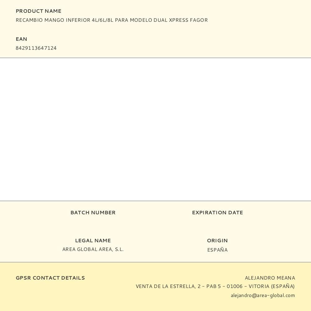 RECAMBIO MANGO INFERIOR 4L/6L/8L PARA MODELO DUAL XPRESS FAGOR