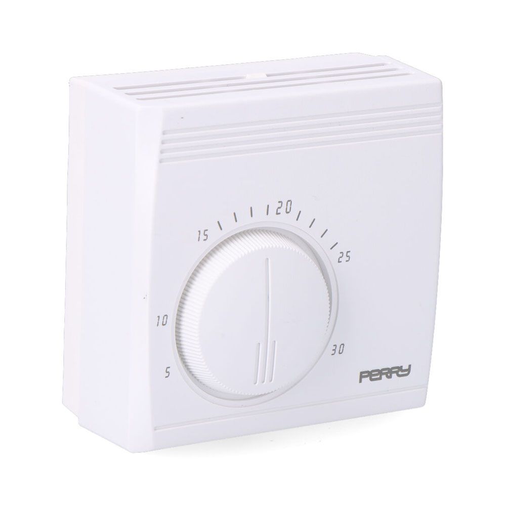 TERMOSTATO ANALÓGICO SIN LUZ PILOTO SERIE TEG. COLOR BLANCO. FUNCIONAMIENTO ON/OFF CON DIFERENCIAL FIJO. 1 NIVEL DE TEMPERATURA CON REGULACIÓN CONTÍNUA EN ESCALA GRADUADA CON INDICADOR MECÁNICO DEL SET POINT. CON BLOQUEO MECÁNICO DE TEMPERATURA. ALIMENTACION 230 V C.A 50-60 Hz. SALIDA 1 CONTACTO CONMUTADO LIBRE DE POTENCIAL 10(2) a/250Vc.a. MEDIDAS: 7,4 x 4 x 7,4 cm