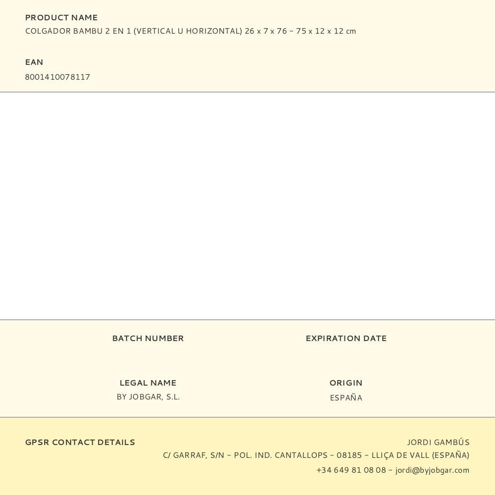 COLGADOR BAMBU 2 EN 1 (VERTICAL U HORIZONTAL) 26 x 7 x 76 - 75 x 12 x 12 cm