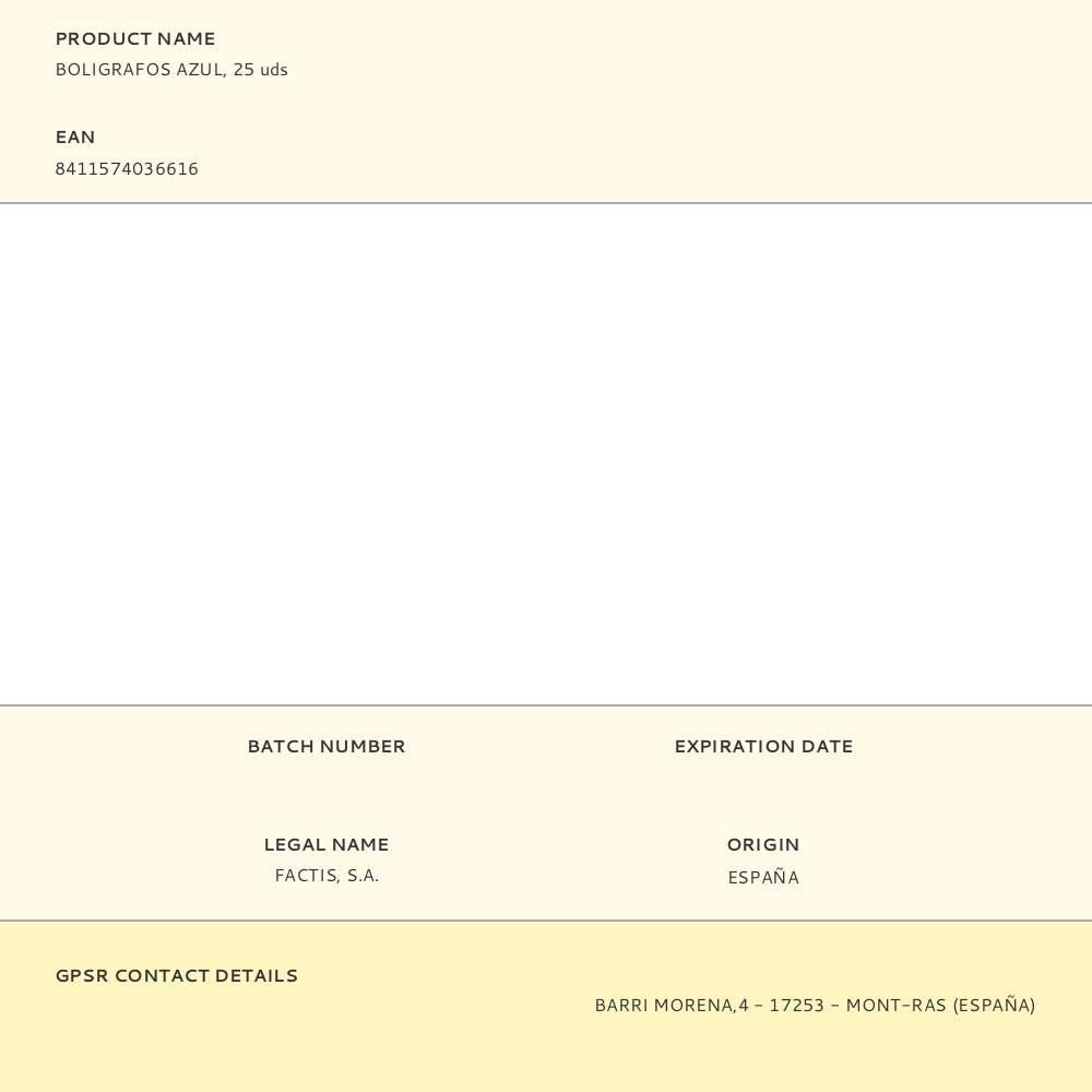 BOLIGRAFOS AZUL, 25 uds