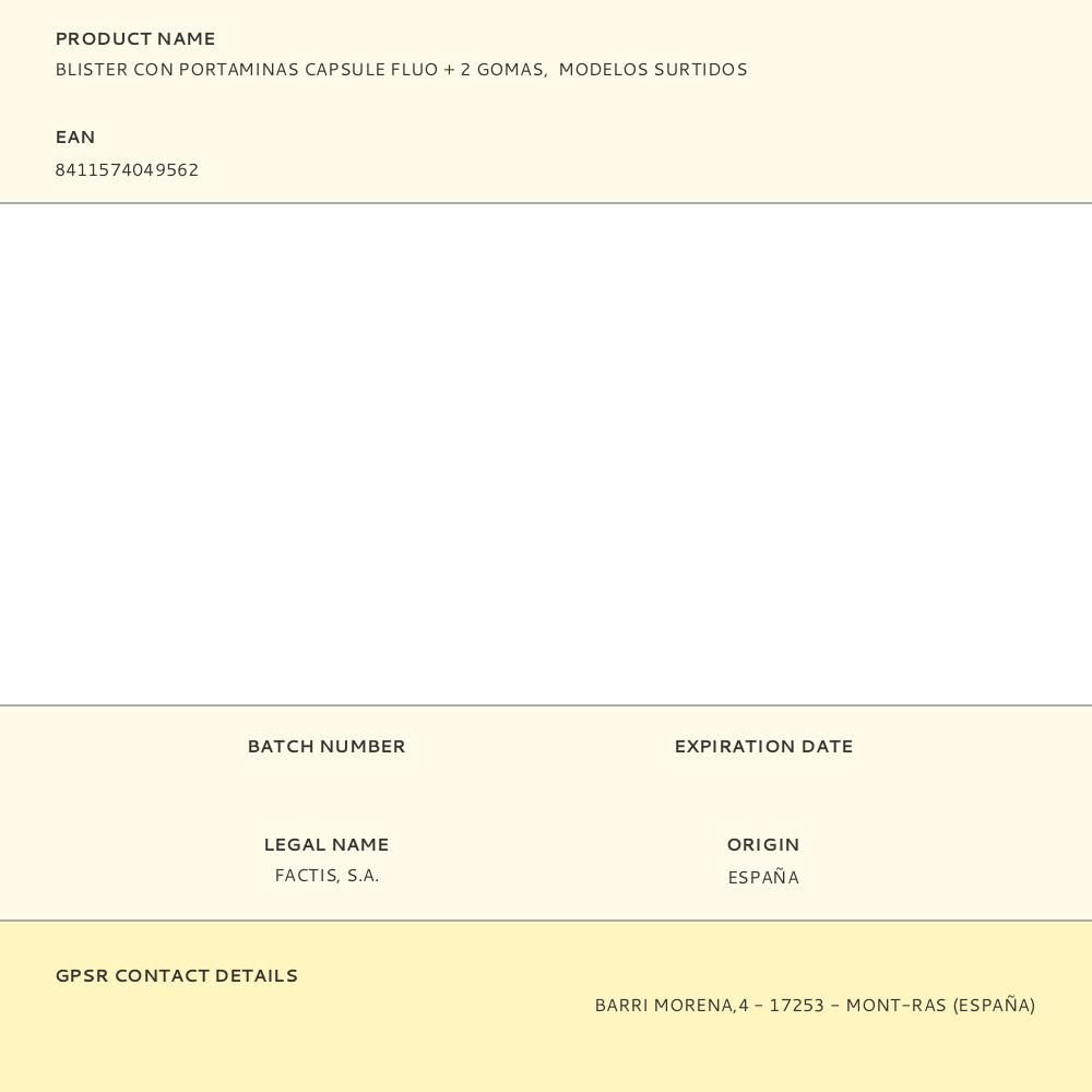 BLISTER CON PORTAMINAS CAPSULE FLUO + 2 GOMAS, MODELOS SURTIDOS