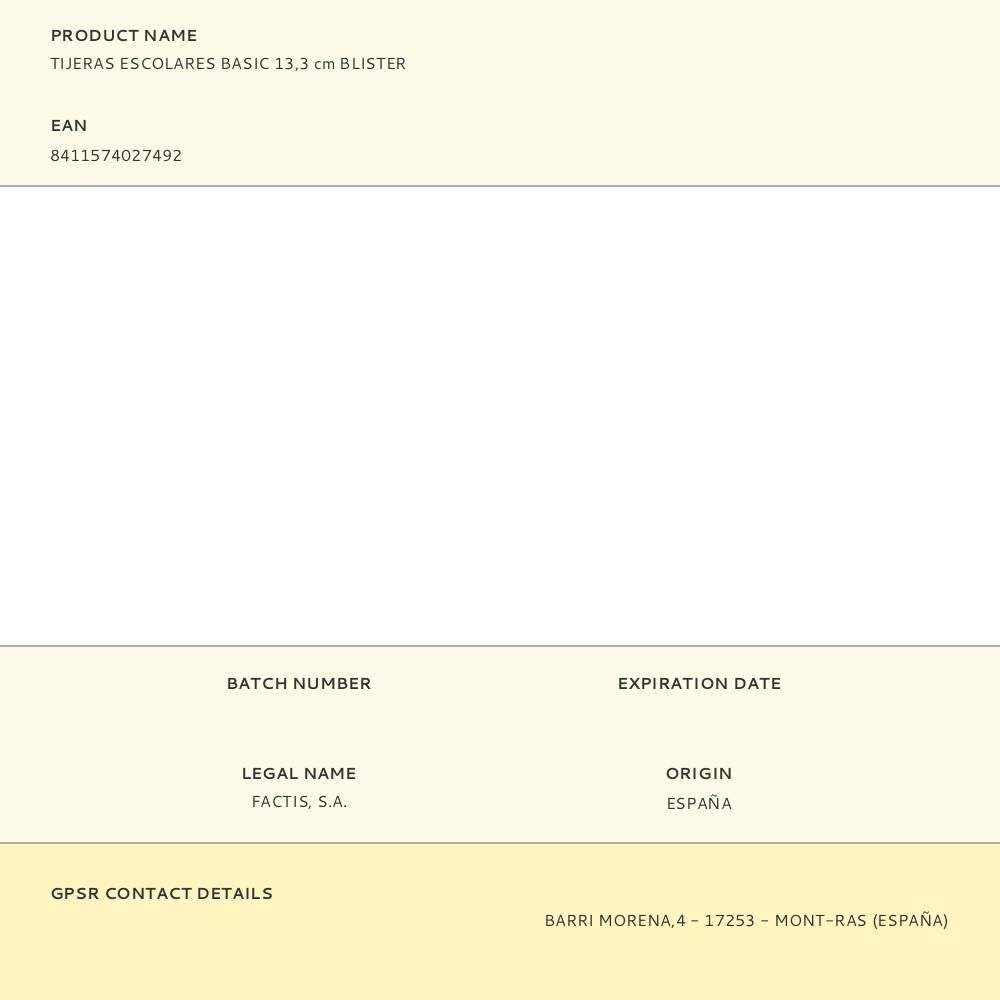 TIJERAS ESCOLARES BASIC 13,3 cm BLISTER