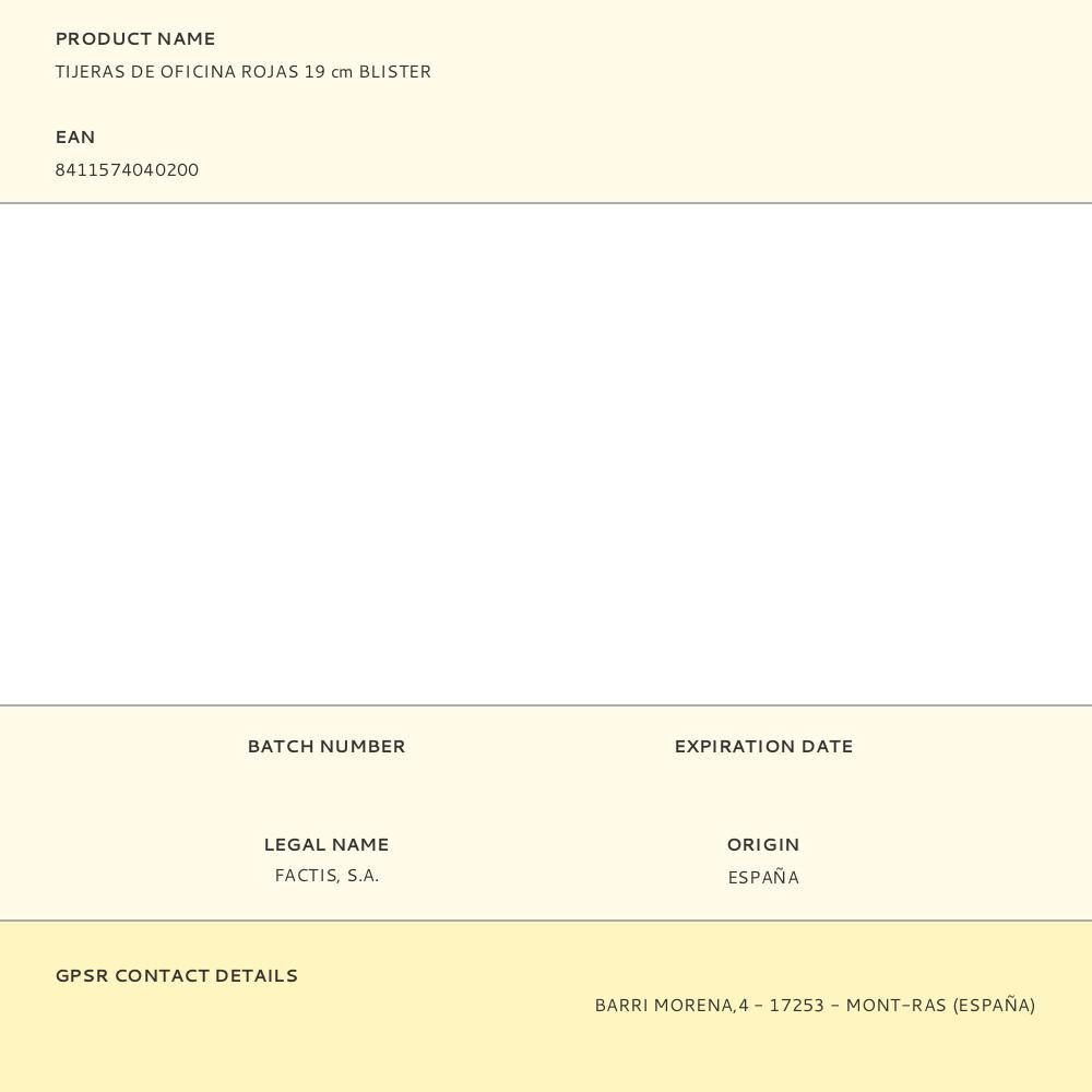 TIJERAS DE OFICINA ROJAS 19 cm BLISTER