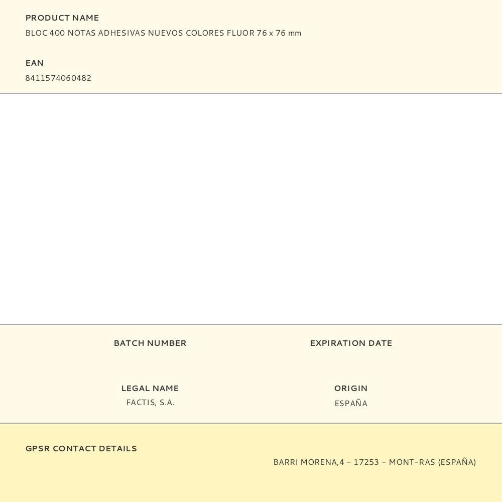 BLOC 400 NOTAS ADHESIVAS NUEVOS COLORES FLUOR 76 x 76 mm