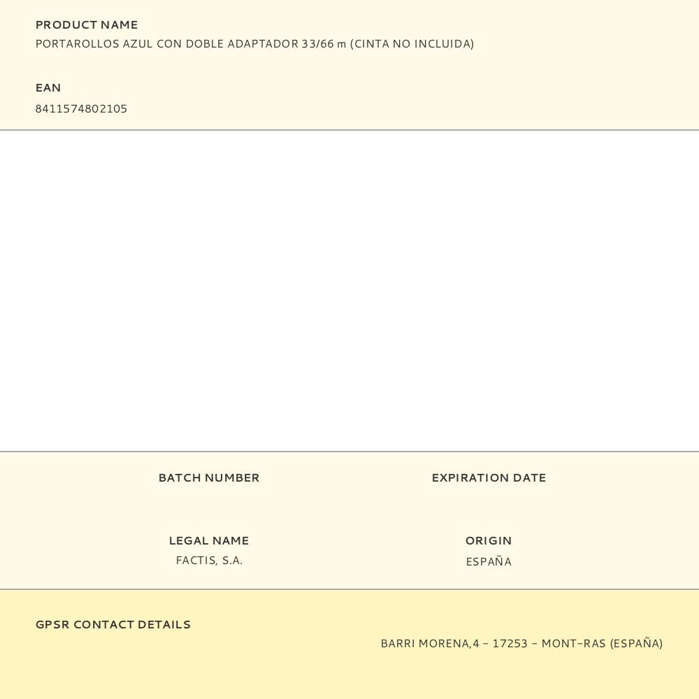 PORTAROLLOS AZUL CON DOBLE ADAPTADOR 33/66 m (CINTA NO INCLUIDA)