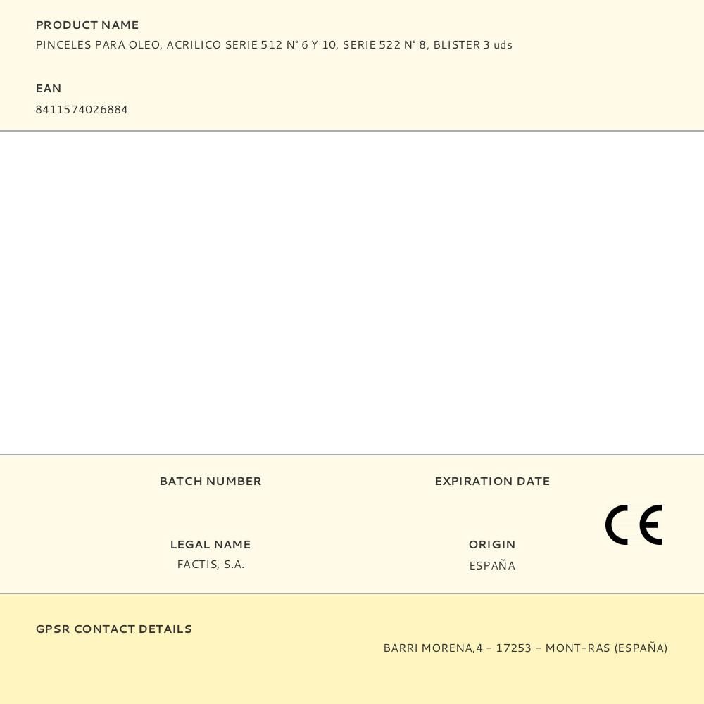 PINCELES PARA OLEO, ACRILICO SERIE 512 N° 6 Y 10, SERIE 522 N° 8, BLISTER 3 uds