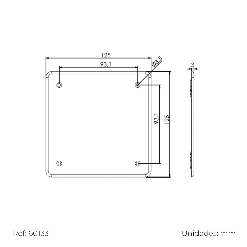 TAPA CUADRADA PARA CAJA 100x100mm CON REF: 60136 TORNILLOS SOLERA 62T