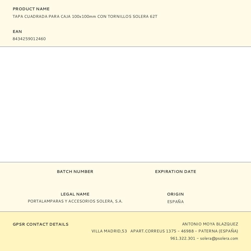 TAPA CUADRADA PARA CAJA 100x100mm CON TORNILLOS SOLERA 62T