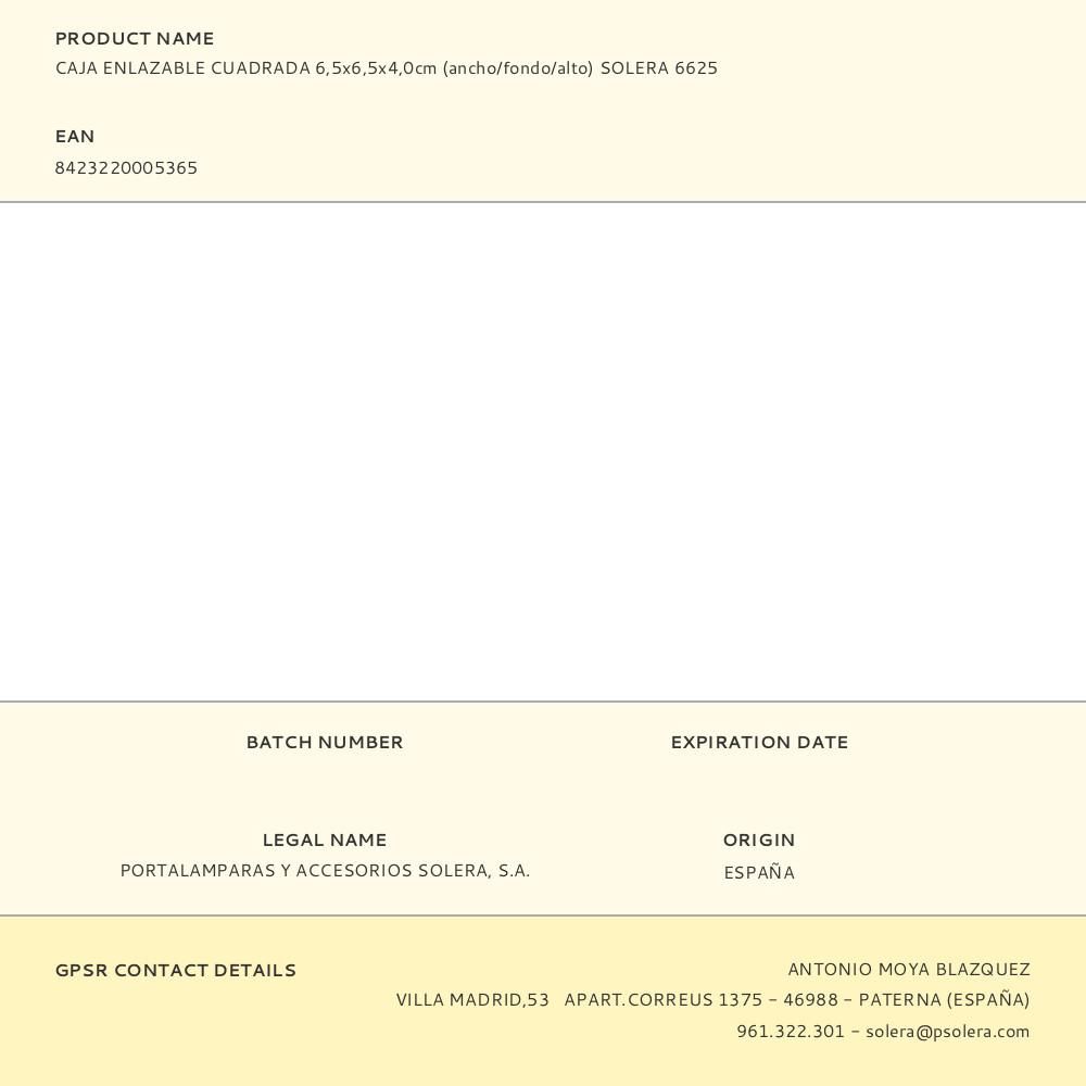 CAJA ENLAZABLE CUADRADA 6,5x6,5x4,0cm (ancho/fondo/alto) SOLERA 6625