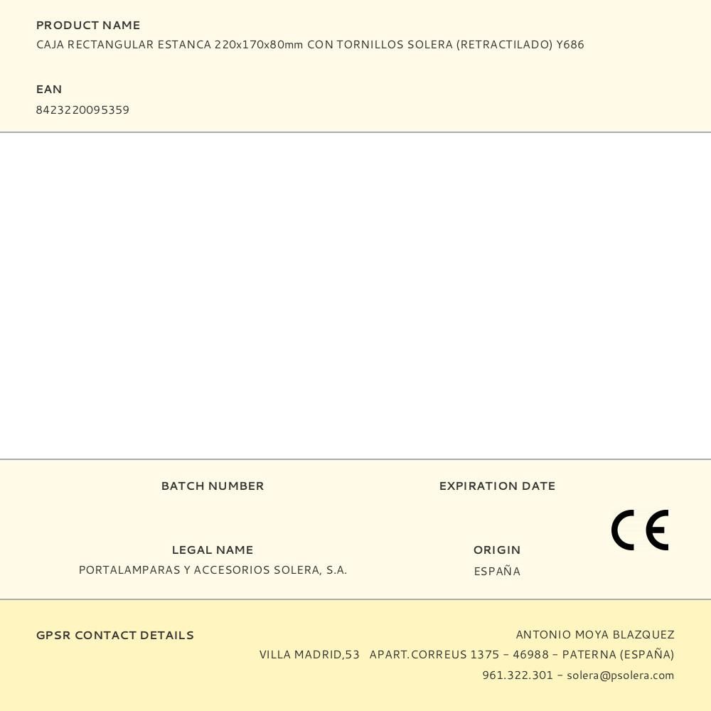 CAJA RECTANGULAR ESTANCA 230 x 180 x 88 mm CON TORNILLOS SOLERA (RETRACTILADO) Y686