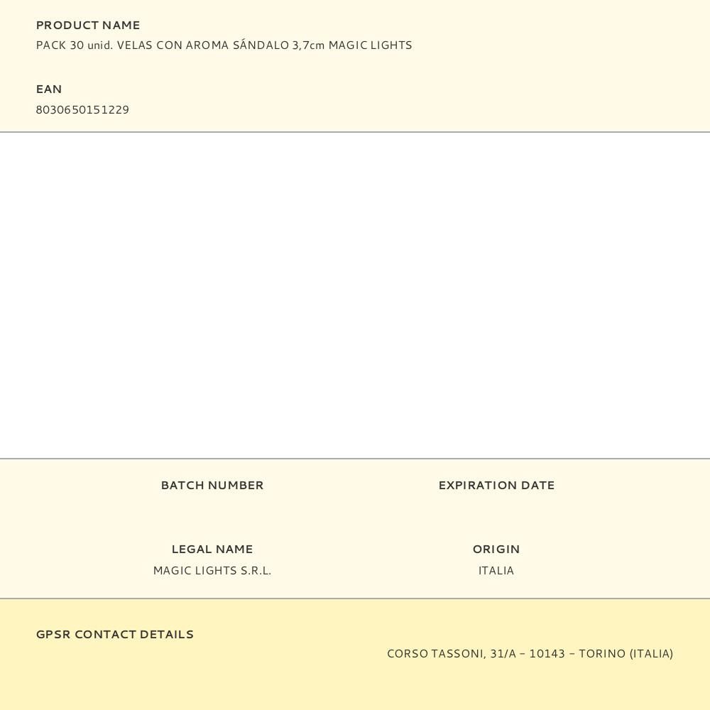 PACK 30 unid. VELAS CON AROMA SÁNDALO 3,7cm MAGIC LIGHTS